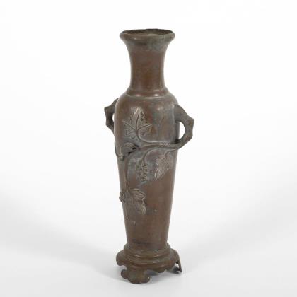 Schlanke Vase mit Weinlaubrelief, welches in den plastischen 'Weinstock-Henkeln' endet. Auf dem Relief auf beiden Seiten je ein plastische Tier mit langem Schwanz