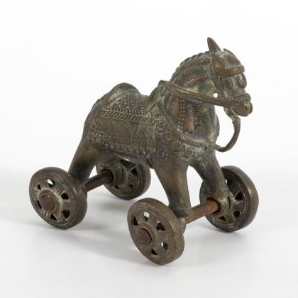 Bronzepferd auf Rädern.