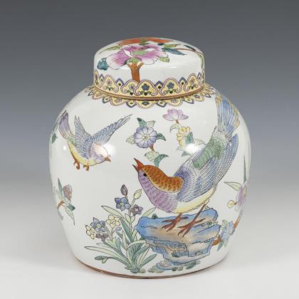 Ähnliche Vasen, mit Vogelreliefs. Einmal zwei Phönixe und kleinere Vögel und auf der anderen Vase Reiher und kleinere Vögel