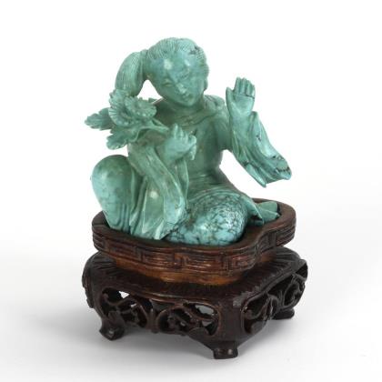 Fein geschnitzte Miniaturfigur aus Türkis.