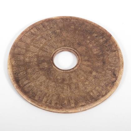 Große Bi-Scheibe mit Schriftzeichen.