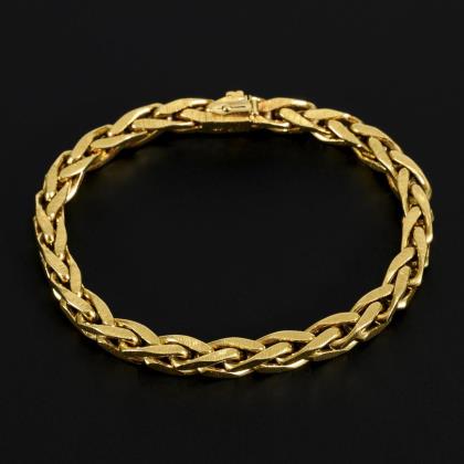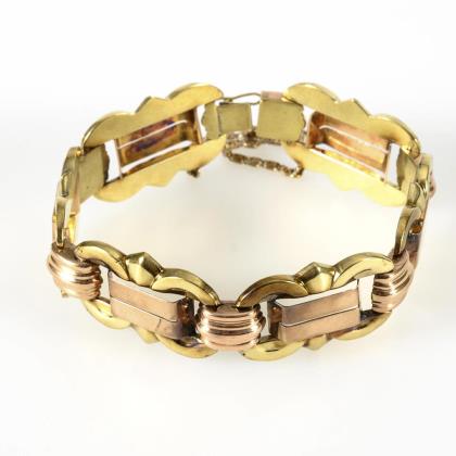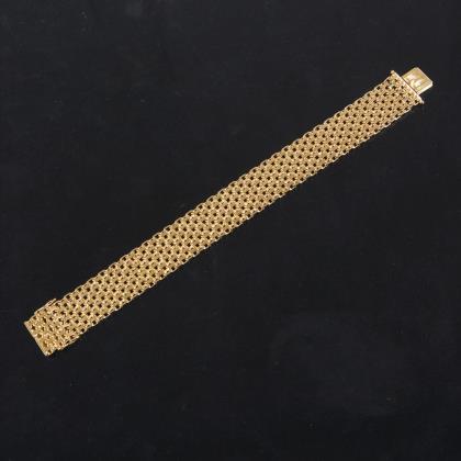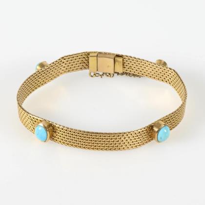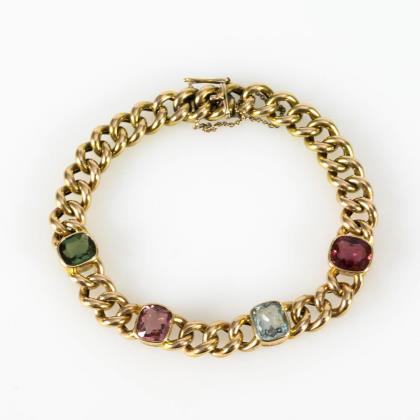 Milaneseband mit 4 zargengefassten Cabochons, an Kastenschloss mit Sicherheitskette