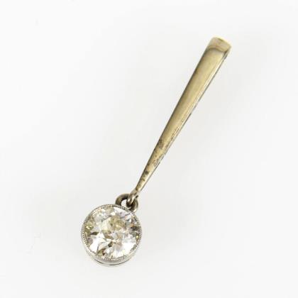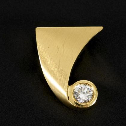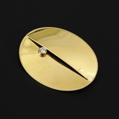Ovale Brosche mit zargengefasstem Brillant. Kugelhaken