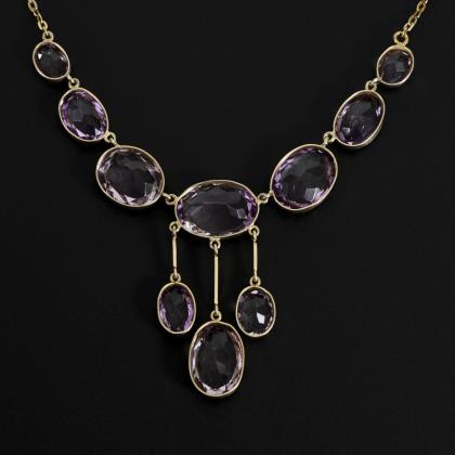 Zargengefasste Amethyste zwischen Ankerkette mit Ringfederschließe