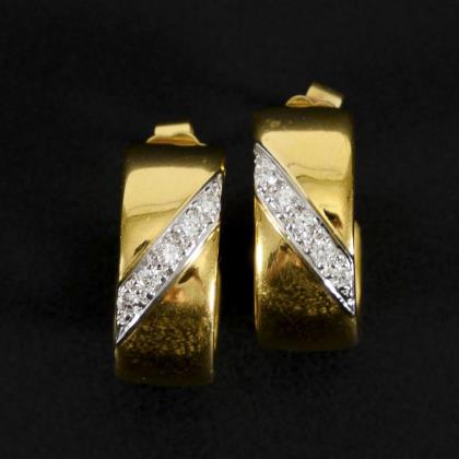 Breite Creolen mit je 5 kleinen, eingelassenen Brillanten. Steckmechanik