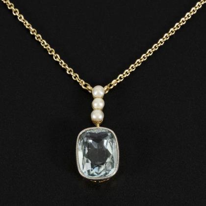 Art-déco-Collier mit Aquamarin? und Saatperlchen.