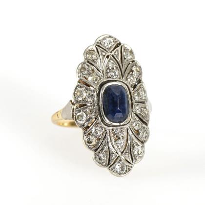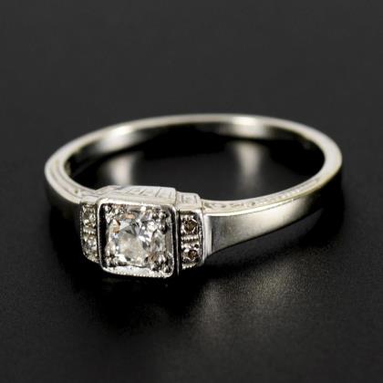 Kleiner Art-déco-Ring mit Altschliff-Brillant und Diamanten.