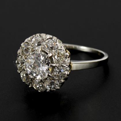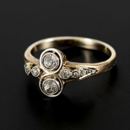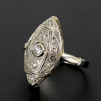 Art-déco-Ring mit Altschliffbrillanten und Diamantrosen.
