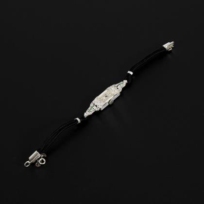 Art-déco-Damen-Armbanduhr mit Altschliff-Diamanten und Smaragden.