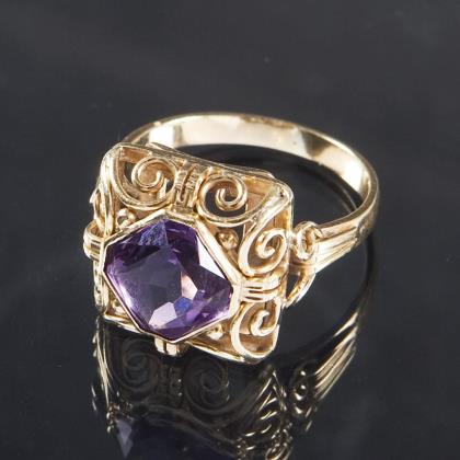 Krappengefasster Stein in durchbrochenem Ringkopf, zwischen schmaler Schiene