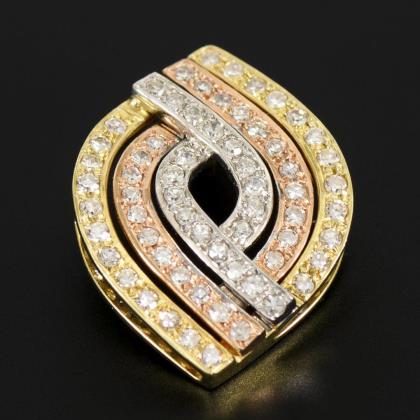 Moderner, 3-farbiger Anhänger mit Diamanten.