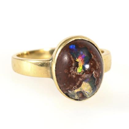 Krappengefasster Opalcabochon und 2 kleine, chatongefasste Brillanten, zwischen schmaler Schiene