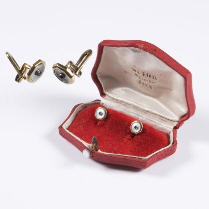 Ohrklipp-Paar mit je 6 kleinen, im Verlauf eingelassenen Diamanten. Klippmechanik