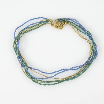 Schnürketten mit kleinen Farbstein?- und Gelbgoldkugeln zwischen kurzen Ankerkette mit Kugelschließe