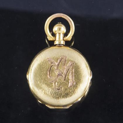 Millegriffes-Anhänger mit Altschliff-Brillant und kleinen Diamantrosen, zwischen zarter Ankerkette mit Kastenschloss und Achtersicherung
