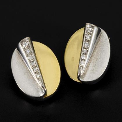 2-farbiges Ohrklipp-Paar mit Diamanten.