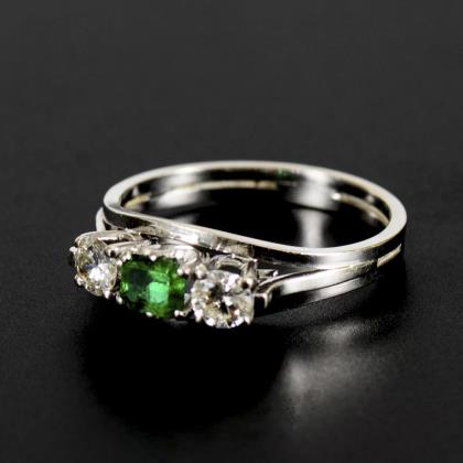 Chatongefasster Smaragd und 2 Brillanten, zwischen schmaler Schiene