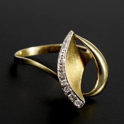 Ausgefallener Ringkopf mit 7 kleinen, eingelassenen Diamanten. Schmale Schiene