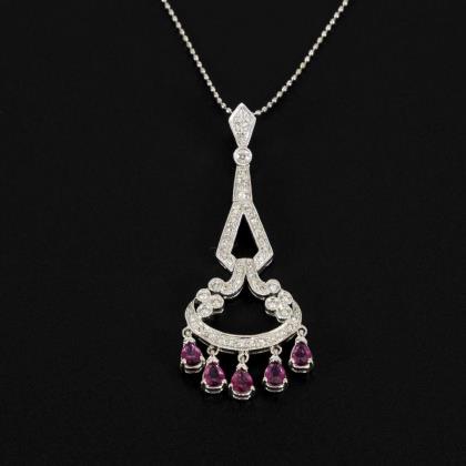 Rahmenanhänger mit 1 Brillant, 24 kleinen Diamanten und zargengefasstem Rubin