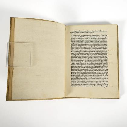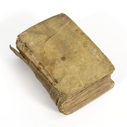 109 Textseiten in lateinischer Sprache, im broschierten Pergamenteinband. Ohne Titelseite, Zuschreibung durch letzte Seite möglich