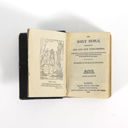 Altes und Neues Testament auf Dünndruckpapier, mit Abbildungen im goldgeprägten Ledereinband, Goldschnitt