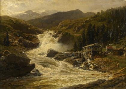 ECKENBRECHER, Themistokles von (1842 Athen - 1921 Goslar). "Norwegischer Wasserfall mit Sägewerk".