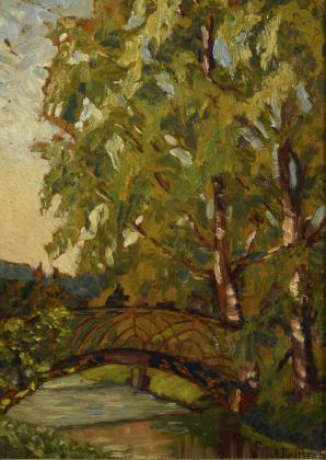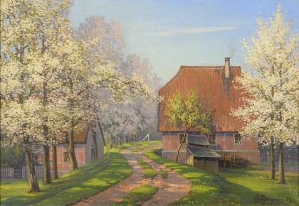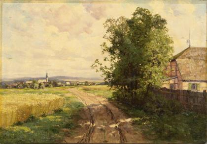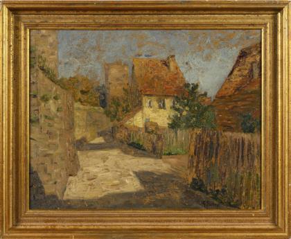 LYONGRÜN, Arnold (1871 Domnau/Ostpreußen - 1946 Kühlungsborn). Sonnige Dorflandschaft.