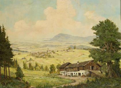LINS, Adolf zugeschrieben. "Böhmische Hütten im Frühling".