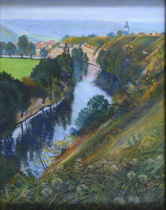 KÖTSCHAU, Georg (1889 Magdeburg - 1976). Thüringer Landschaft mit Blick auf Jena.