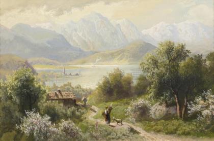 FRANK, S.. Alpenlandschaft mit See und Staffage.