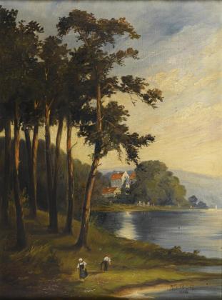 LOTZ, Eduard (1818 Düsseldorf - 1890 ebd.). Schweizer See mit Staffage.