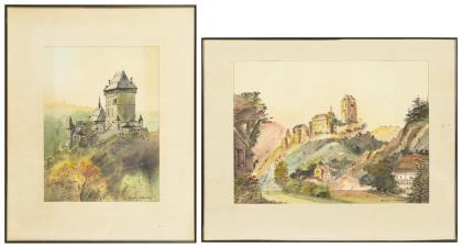 GEBHARDT, Alexander (1869 Erfurt - 1958). Blick auf Schloss Schwarzburg + Original Verkaufskarte des Malers.