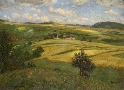 SPRUNG, Hanns (1884 Koblenz - 1948 Bendorf). Wohl Mosellandschaft mit Stadt.