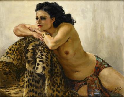 DIEY, Yves (1892 Paris - 1984 ebd.). Frauenakt auf Leopardenfell.