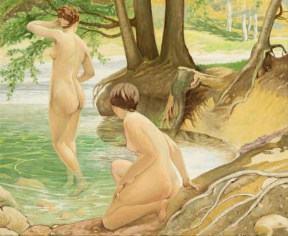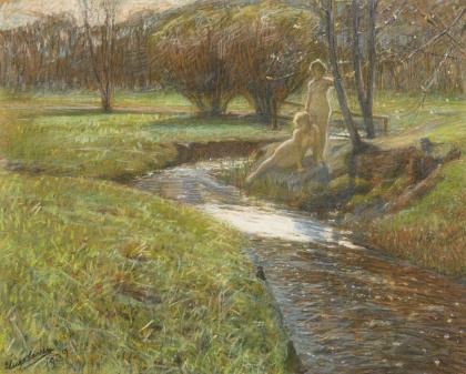 LARSEN, Hugo (1875 Kopenhagen - 1950 ebd.). Zwei Frauen am Bach.