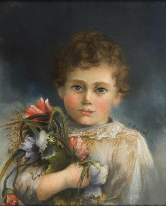BÜCHSEL, Elisabeth (1867 Stralsund - 1957 ebd.). Mädchen mit Blumen.
