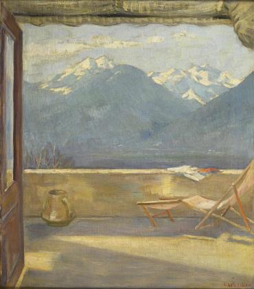 WALTHER, Clara (1860 Pößneck - 1943). Sonnige Terrasse mit Blick zum Gebirge.