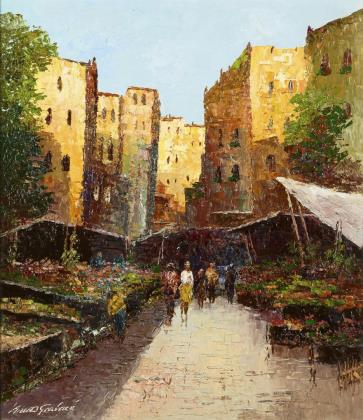 ARNOLD-GRABONÉ, Georg (1896 München - 1981 Percha). "Markt in Italien".