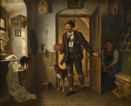 HETZ, Carl (1828 Kulmbach - 1899 München). Alpenländische Genreszene mit Liebespaar.