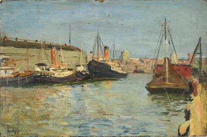 OPPLER, Ernst (1867 Hannover - 1929 Berlin). Schiffe im Hafen.