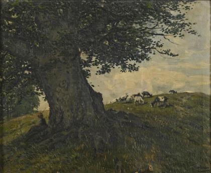 FREY, Wilhelm (1826 Karlsruhe - 1911 Mannheim). Landschaft mit Hirtin und Vieh.