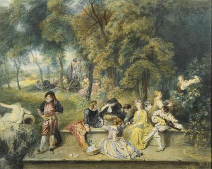 FRIEDRICH, Ludwig (1827 Friedrichstadt - 1916 Dresden). Kopie nach Watteau "Unterhaltung im Freien".