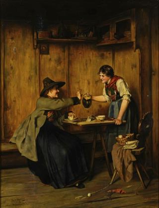 MÜLLER, Emma von (Edle von Seehof) (1859 Innsbruck -1925 München). Genreszene im Alpenland.