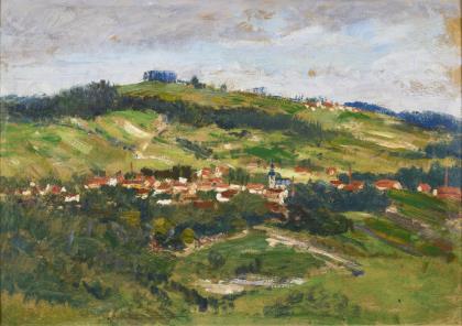 HUTH, Franz (1876 Pößneck - 1970 Weimar). Stadtansicht mit Kastanie.