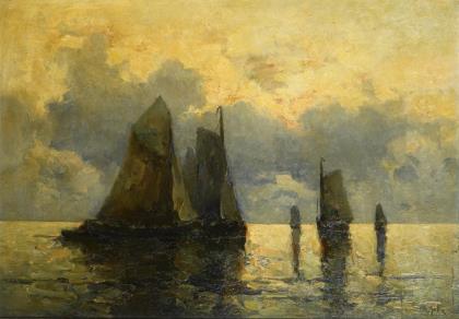 GUBA, Rudolf (1884 Hamburg - 1950 München). Schiffe auf ruhiger See.