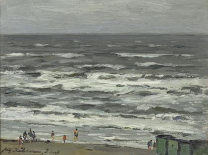 KÖHLER, Fritz (1887 Moritzburg - 1972 Düsseldorf). Strandszene mit Badewagen.