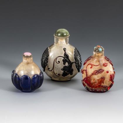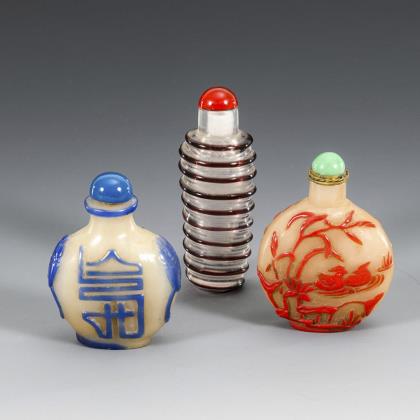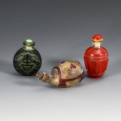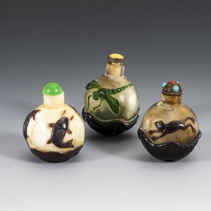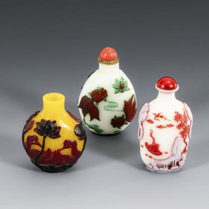 3 Snuffbottles mit mehrfarbigem Überfang.