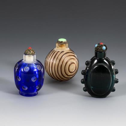 3 Snuffbottles aus unterschiedlichen Materialien.