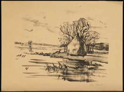 STORT, Eva (1855 Berlin - 1936 Berlin). Heuhaufen am Ufer.
