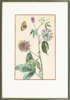 Blatt XII: Narzisse, Blatt XXXXVIII: Astern, Blatt LI: Anemonen und Blatt LV: Passionsblume; aus Theatrum Florae", hrsg. von L.C. Desnos in "Histoire generale des insectes de Surinam et de toute l'Europe, contenant leurs s, leurs figures, leurs differentes metamorphoses [...]", 1771